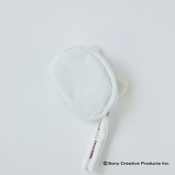 デザイン:タマとベーの顔の形を大胆にポーチにしました。目や鼻などは刺繍で表現しています。フラボアドビーテープを使用した持ち手付き。裏地はドット柄になっており、内ポケット付きです。