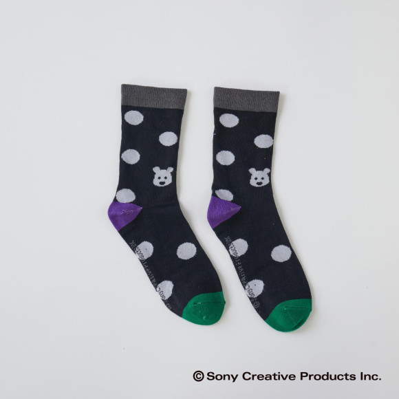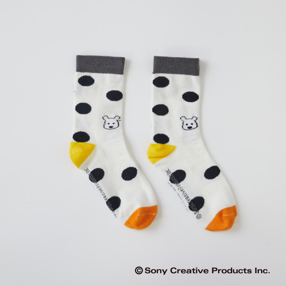 デザイン:ドット柄の一部がタマとポチになったソックス。つま先と踵に配色カラーが入っており、ポイントになっています。ホワイト、グレー、ブラックの3色展開。 *こちらの商品はユニセックス商品です。