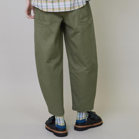 デザイン:フラボアで人気のカーブパンツシリーズよりカラーチノ素材が登場。いつもの丸みのあるテーパードシルエットやイージーで履きやすい仕様はそのままに、新鮮な印象のオフホワイトや定番的ながら欲しかったニューカラーのカーキなどすぐにでもデイリーに活躍できるアイテムになっています。