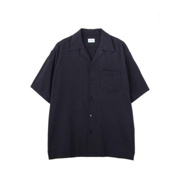 使い勝手の良いプレーンなコットンレーヨンシャツ サイズ感は夏らしいゆったりサイズ感で夏らしく涼しげなアイテム。 生地捺染プリントのアイテムなので、発色も良いのが特徴です。 素材は日本の高温多湿の気候に理にかなったテキスタイルです。 レーヨンはとても吸水力が高く、角ばった繊維の為肌への接地面が狭くひんやり感じます。 その一方で生地がデリケートで縮みやすいため取り扱いの難しい素材です。 しかし、そこにコットンを混ぜることでイージーケアを実現し、いいとこどりの素材です。 経糸、緯糸ともにレーヨンの混合糸を使用し朱子織りすることで、 組織点が少ないため経糸をより長く表面に出せることで綾目が目立たず 滑らかで滑りが良い光沢に富んでいる生地であることも特徴です。