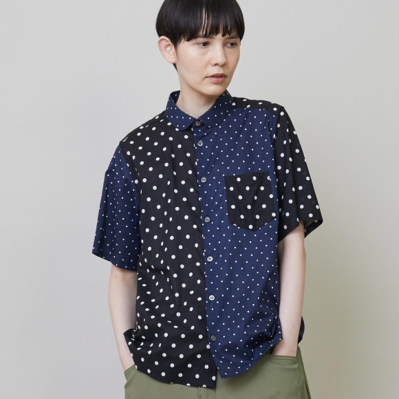 素材:綿特有の肌触りの良さと程よい軽さが特徴の綿ローンをベースに2種類のドット生地を組み合わせています。