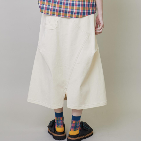 デザイン:フラボアで人気のカーブパンツシリーズよりカラーチノ素材が登場。いつものパンツをリメイクしたかの様なデザインのスカートは脇のタックで面白いシルエットをつくっています。新鮮な印象のオフホワイトや定番的ながら欲しかったニューカラーのカーキなどすぐにでもデイリーに活躍できるアイテムになっています。