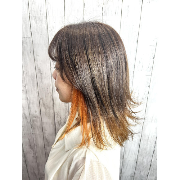 インナーには鮮やかなオレンジカラーをいれて、毛先はグラデーションになるようにしました☆