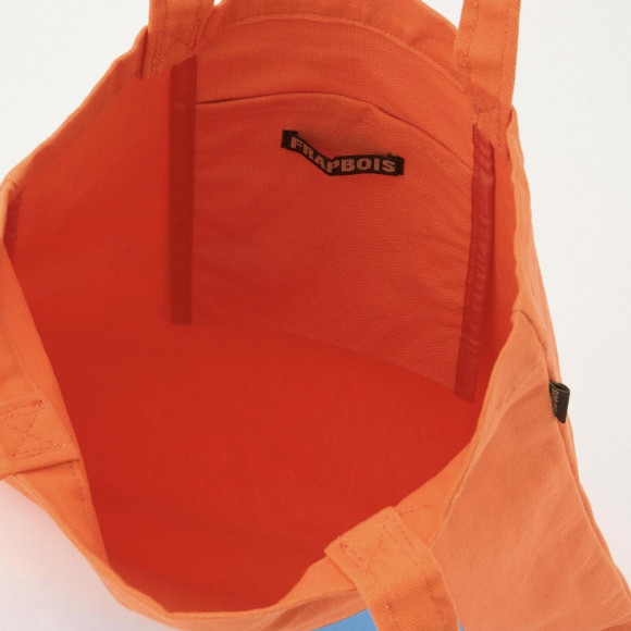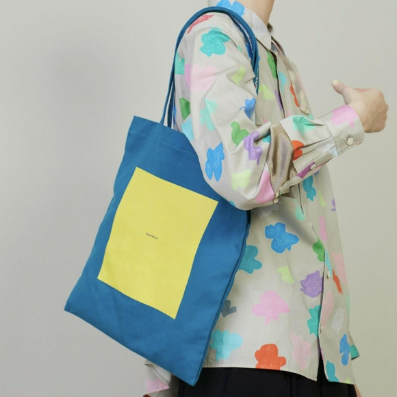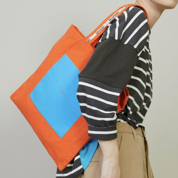 素材: ザックリとした表面感のキャンバス素材を使い、大胆に配色のプリントで仕上げたトーバッグ。