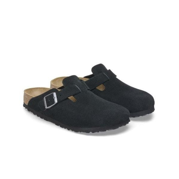BIRKENSTOCKお馴染みの、洗練されたフォームが魅力的なBoston。 このモデルには柔らかく肌触りの良いスエードレザーを使用しています。 ベルトを調節し、自由にフィット感を調整できます。 足の形状を考慮した、天然ゴム混合コルクフットベッド アッパー: スエードレザー インソール: スエードレザー アウターソール: EVA 詳細: 金属製バックルで自由に調整可能なベルト “Made in Germany”