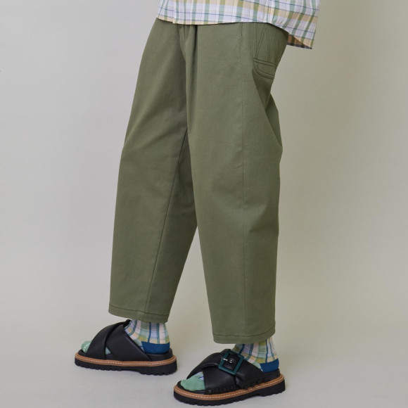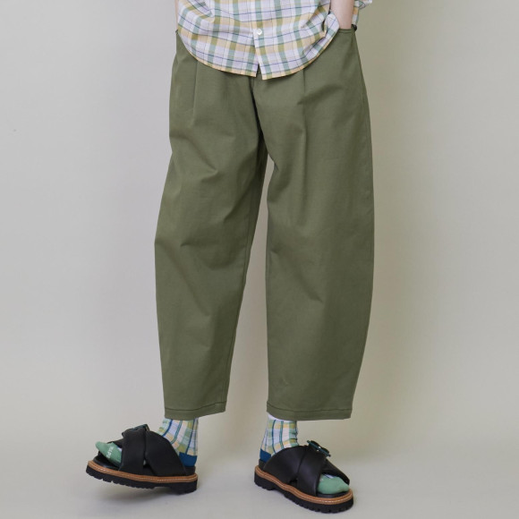 デザイン:フラボアで人気のカーブパンツシリーズよりカラーチノ素材が登場。いつもの丸みのあるテーパードシルエットやイージーで履きやすい仕様はそのままに、新鮮な印象のオフホワイトや定番的ながら欲しかったニューカラーのカーキなどすぐにでもデイリーに活躍できるアイテムになっています。