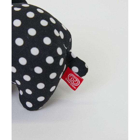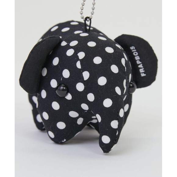 【素材】 ドット柄のシャツ生地に中綿を入れたぬいぐるみ型にボールチェーンが付いています。