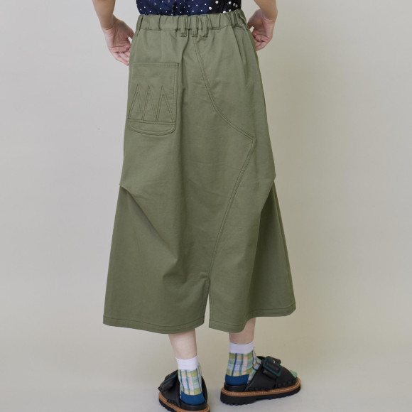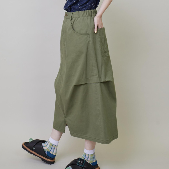 デザイン:フラボアで人気のカーブパンツシリーズよりカラーチノ素材が登場。いつものパンツをリメイクしたかの様なデザインのスカートは脇のタックで面白いシルエットをつくっています。新鮮な印象のオフホワイトや定番的ながら欲しかったニューカラーのカーキなどすぐにでもデイリーに活躍できるアイテムになっています。