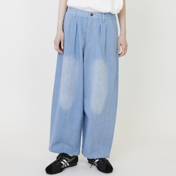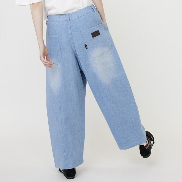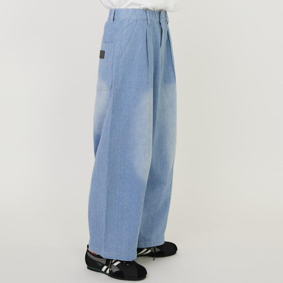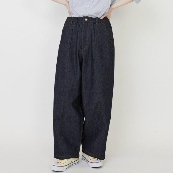 デザイン:フラボアで人気のデニムパンツシリーズから新たに「モーメント デニム」が登場。今までに無かったワイドテーパードシルエットはフロントのタックでしっかり見えをつくりつつ、裾の前後で取ったダーツが緩やかで落ち着いたテーパード感を出しています。ウエストにはゴムとヒモでイージーな仕立てになっていたり素材自体の持つ伸縮性で履き心地が良く、キメ過ぎないところも◎。ヒップポケットのオリジナルのパッチがさり気なくアクセントをつくっています。サイズ展開も豊富なのでお好きな雰囲気でサイズ選びも楽しめます。爽やかでアイテムとの相性も良いサックスとべシックでトラッドな雰囲気のネイビーの2色展開です。