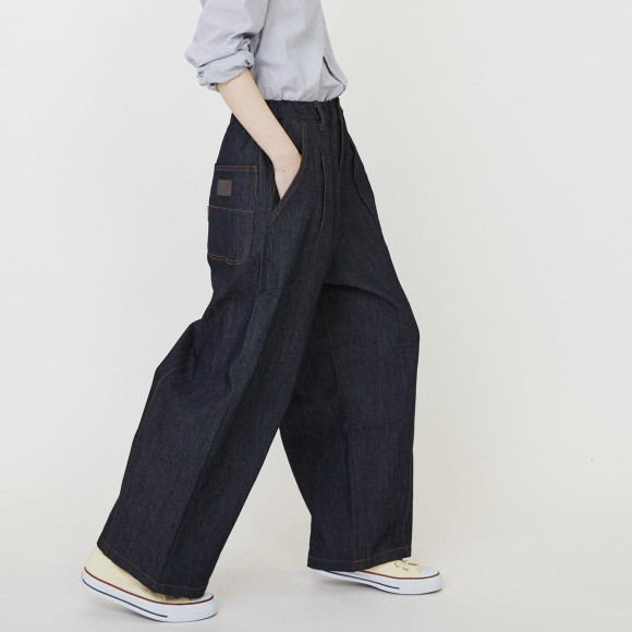 素材:適度な厚みと抜群のストレッチ性にさりげなく入った縦の節がキレイ過ぎない表情を出しています。デニム生地のしっかり感は有りながらも肌触りの良いインディゴ素材で上品な雰囲気も出しています。