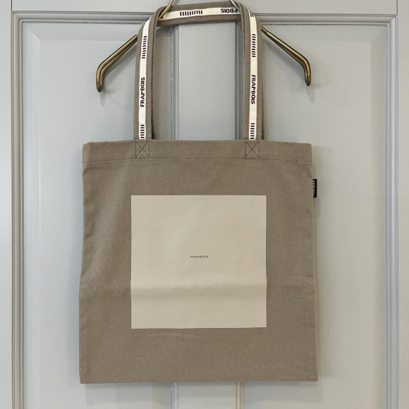 本日はスッキリと四角いプリントとくり抜かれたロゴがさり気なく可愛いデザイン、ロゴトートをご紹介します。