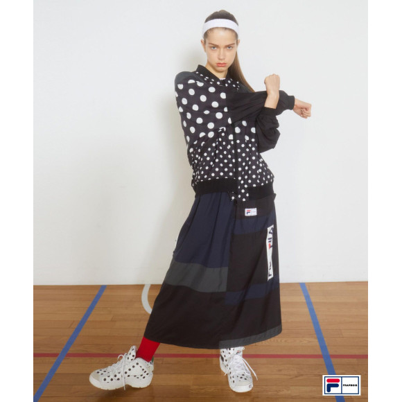 トリコロールカラーとフラボアのアイコニックなドットが組み合わさったスカートをご紹介します。