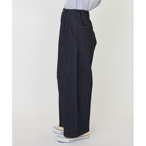素材:適度な厚みと抜群のストレッチ性にさりげなく入った縦の節がキレイ過ぎない表情を出しています。デニム生地のしっかり感は有りながらも肌触りの良いインディゴ素材で上品な雰囲気も出しています。