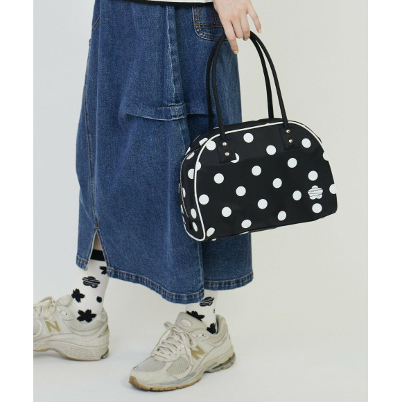 デザイン:レトロテイストのボストンバッグ。しっかりとしたマチに上部がラウンドした形は昔のスポーツバッグのようで可愛いです。持ち手も同素材にしっかりとした芯が入り持ちやすくなっています。無地は「パーキー」がワンポイントでさりげなく入り、ドットはポップな仕上がりになっています。