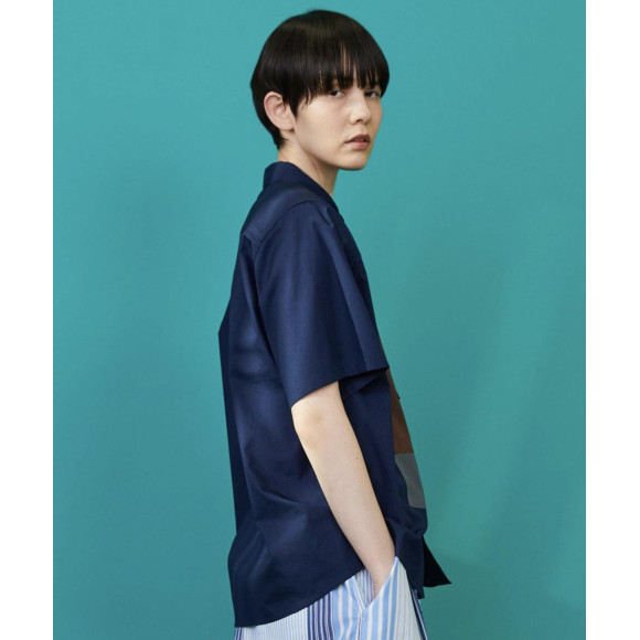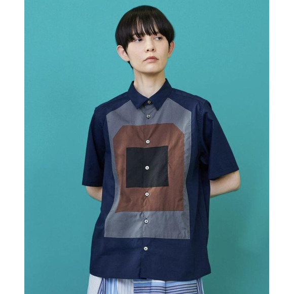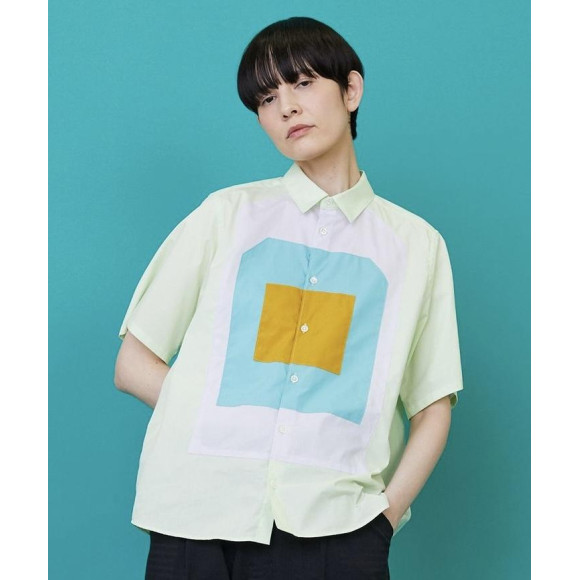 デザイン:ゆったりとしながらもルーズ過ぎないシルエットのベーシックなシャツブラウスをベースに、フロントに大胆にカラーの配色を組み合わせたデザイン。色の配色、大きさ、形にこだわって、シンプルながらモード感漂う雰囲気に仕上がっています。
