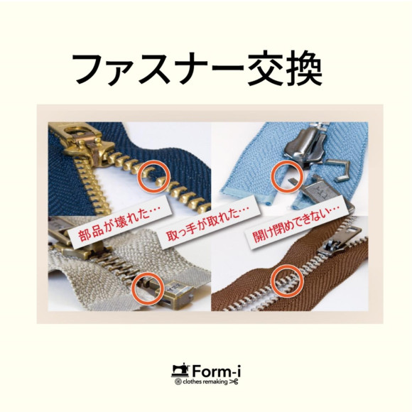 ※交換するファスナーはYKKなどの汎用品に変更となりますので予めご了承ください。