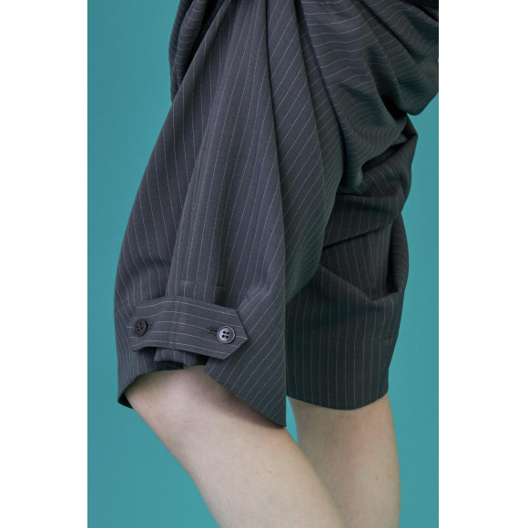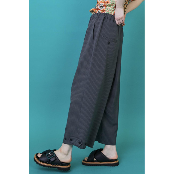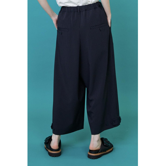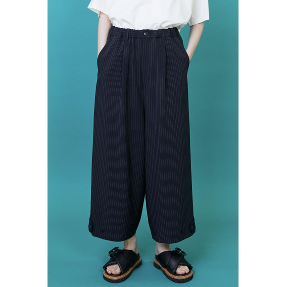 【素材】キレイな落ち感としなやかな質感、そこにトラッドなピンストライプが上品な雰囲気をつくっています。ストレッチ素材ながら軽さもあり、お手入れが簡単な事もポイントです。接触冷感やUVカットなど機能面も◎な素材です。