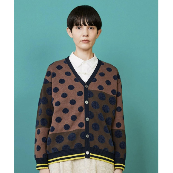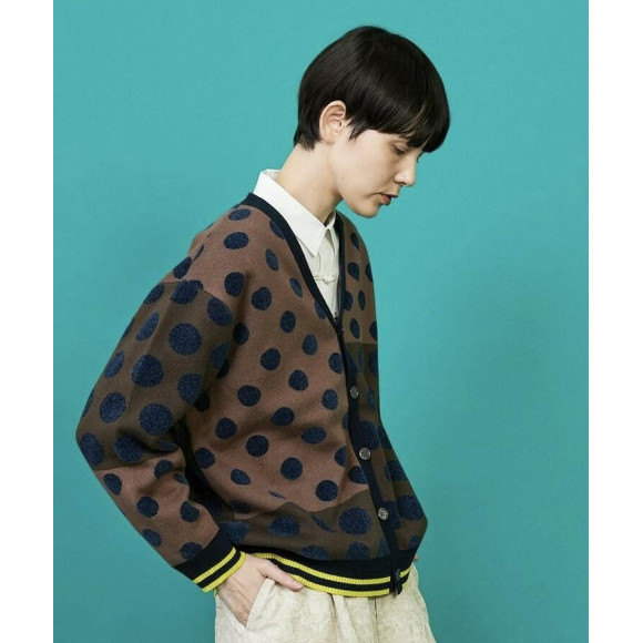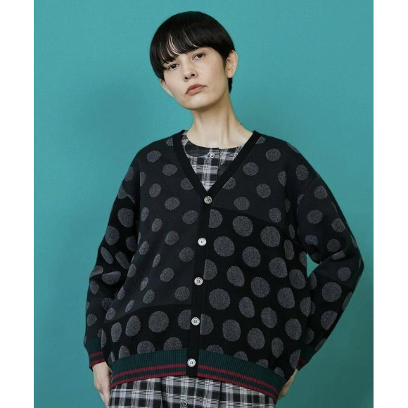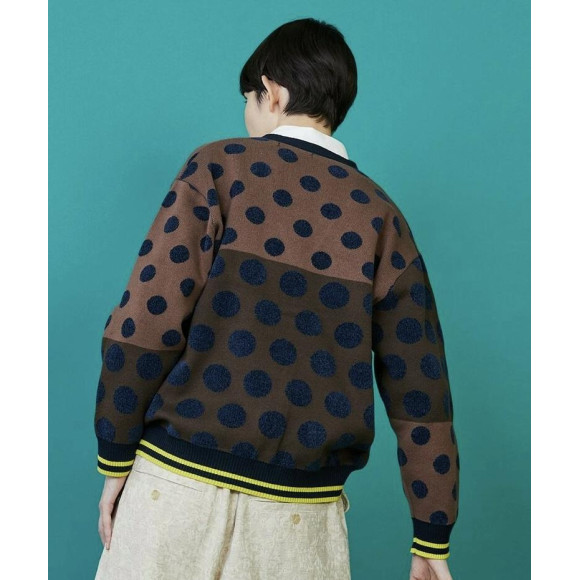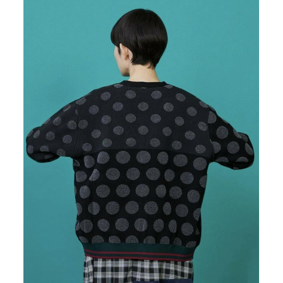 【デザイン】程よいゆとりとコンパクトな着丈が特徴のシルエットに大胆に切り替えを入れ2種類のドット柄を配置しています。
