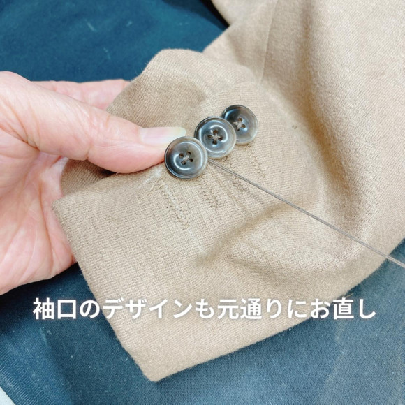 袖口にあるデザインもほとんどが元通りにお直し可能です。