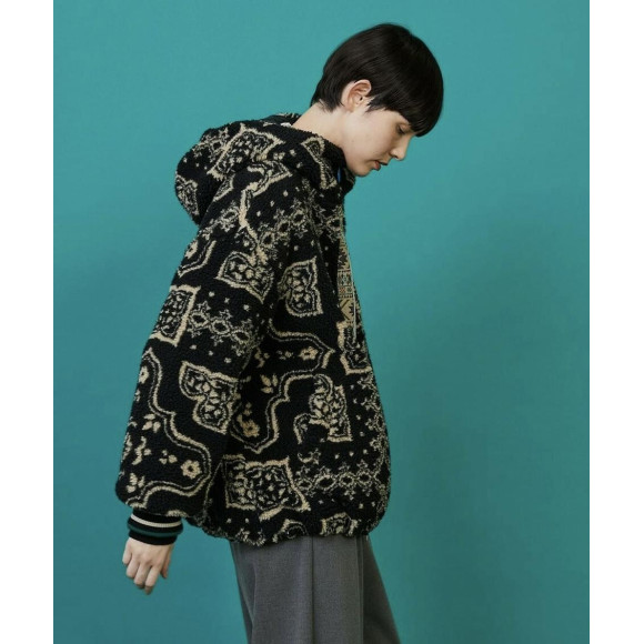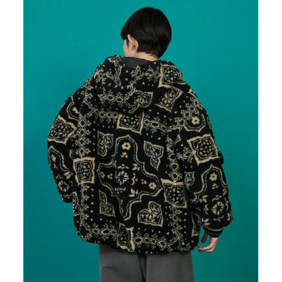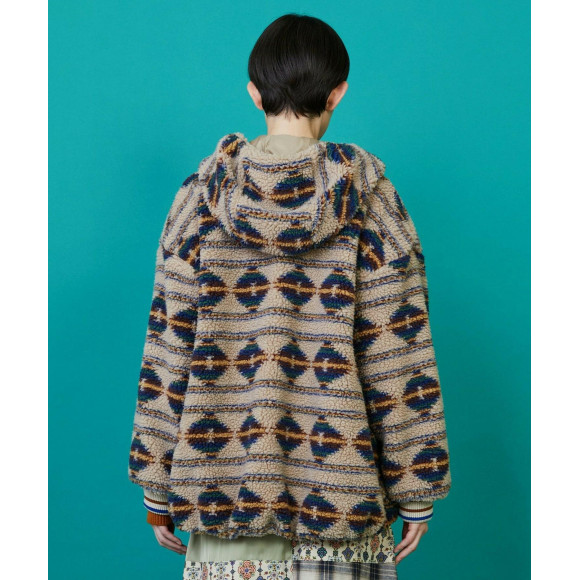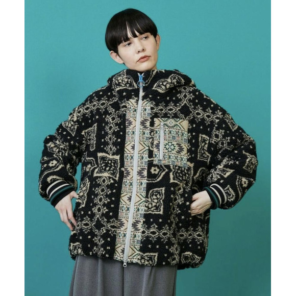 【素材】フォークロア調のジャガードボア素材とボタニカル調のジャガード素材を組み合わせたブルゾンコート。