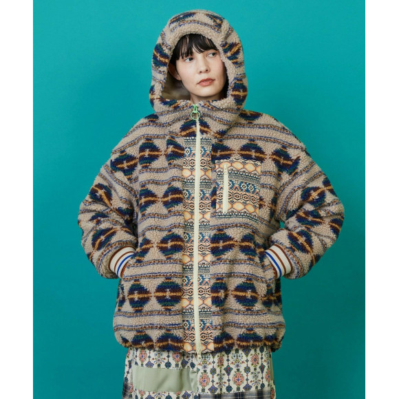 【デザイン】インパクトのある柄のボア生地を大胆に使いゆったりとしながらも丸みが程よいヌケをつくっているフードコート。アウトドア調の切り替えには部分的にジャガードの生地を組み合わせて複雑な雰囲気に仕上げています。今シーズンのテーマを象徴するかのようなデザインコート。 *0,1サイズですが、こちらの商品はユニセックス商品です。