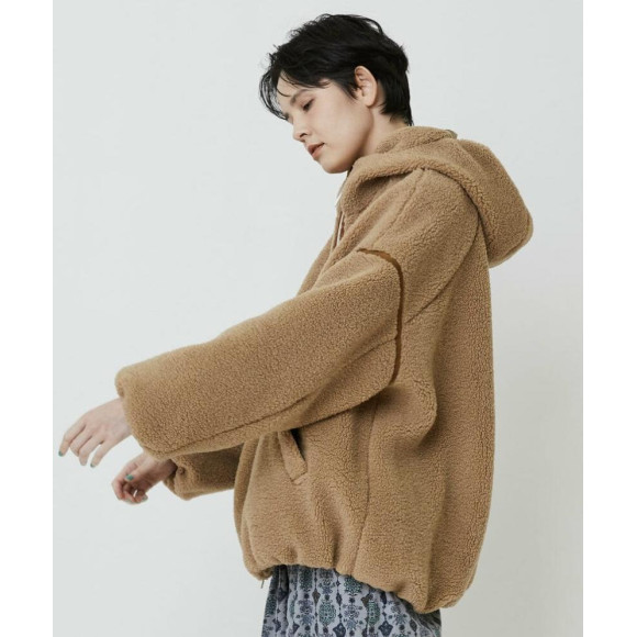 【素材】細かなカールが特徴のボア素材を使ったブルゾンコート