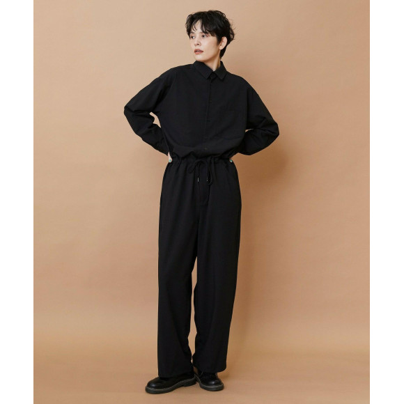 上半身はゆったりとしたオーバーシャツをベースにパンツ部分が緩やかなワイドテーパードシルエットに仕上げたオールインワンアイテム。