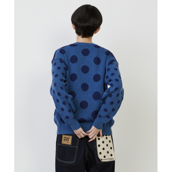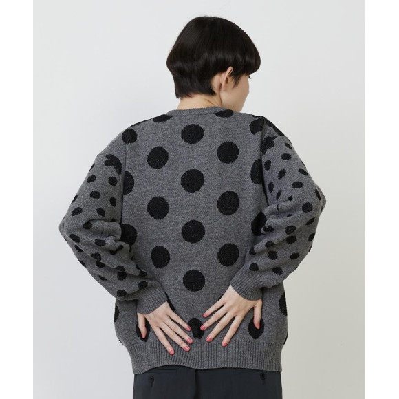 【素材】ポリエステル素材のストレートの糸とポリエステル素材のミニブークレー糸を組み合わせたジャカード編みのニットです。
