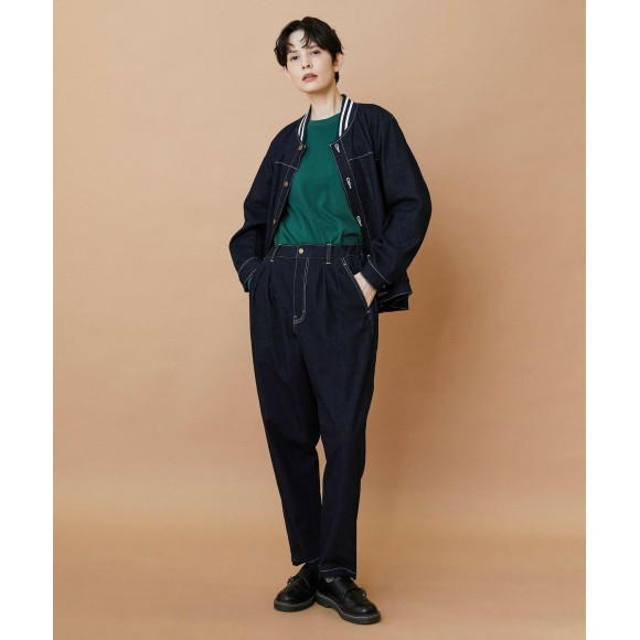 *インディゴ素材の特質上、生産の工程で少し色落ちやダメージが見受けられますが、そのラフな表情をお楽しみください。