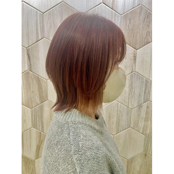 ★ イヤリングカラー/ミディアムレイヤー/外ハネ/ピンク★