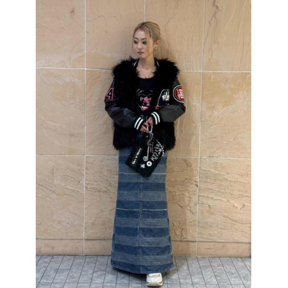 カッコ良い印象のジャケットや小物にスカートを合わせることで大人っぽくクールなコーディネートになります!インナーのロンTもラメが可愛くしっかり目立ちます♪