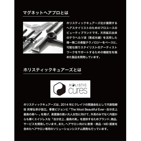【すべては美を創造するヘアスタイリストのために】をブランド理念に、プロの仕事道具としてのハイスペックなスタイリング家電開発で、美容業界・ヘアスタイリストのサロンワークを支えるプロフェッショナルヘアケアブランドになります。