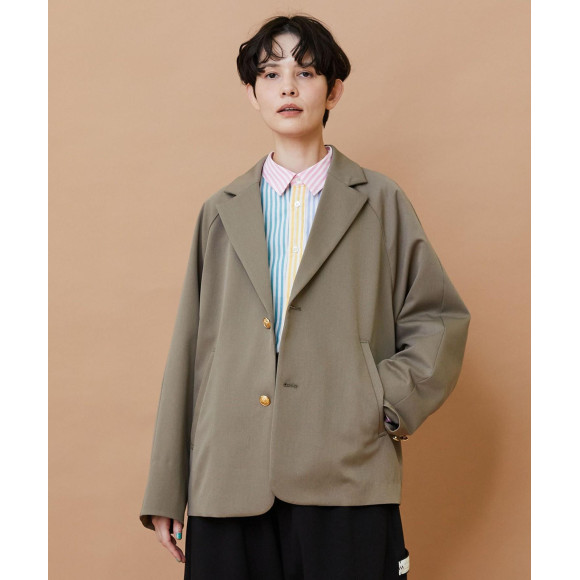 【デザイン】ゆったりとしたリラックスシルエットとラグランスリーブで少しスポーティーな要素も入れ込んだブレザージャケット。