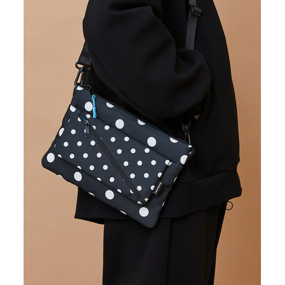 斜めに入ったポケットやメッシュのポケットなど機能的で有りながらもシンプルなところがデイリーに使いやすいアイテムです。