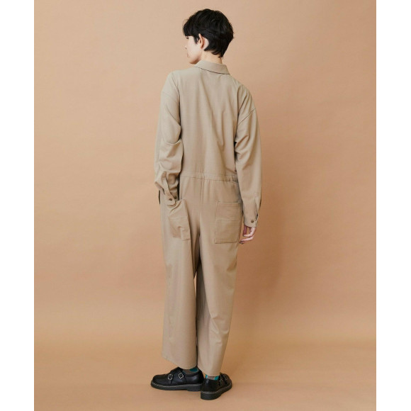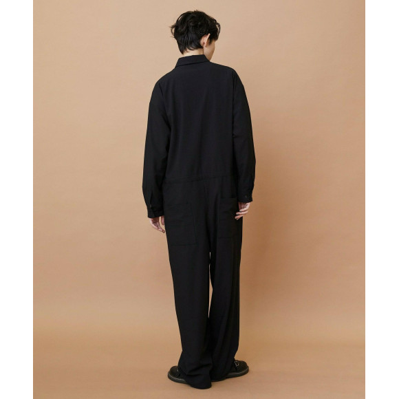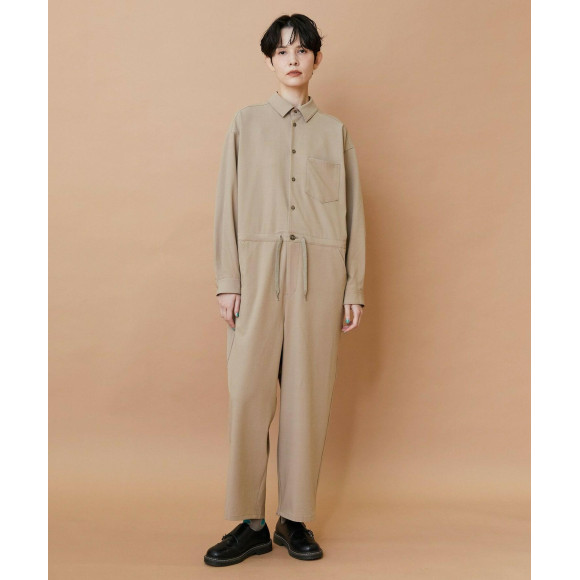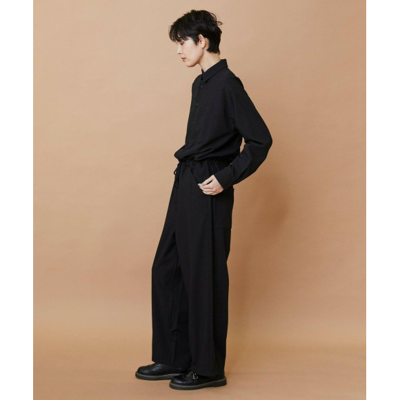 上半身はゆったりとしたオーバーシャツをベースにパンツ部分が緩やかなワイドテーパードシルエットに仕上げたオールインワンアイテム。