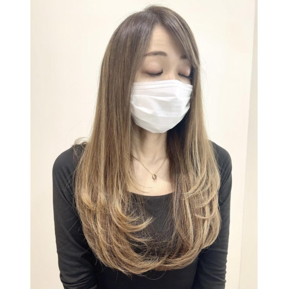 【ハイライトカラー】を活かす、ストレート仕上げの【ロングレイヤー】スタイル♪