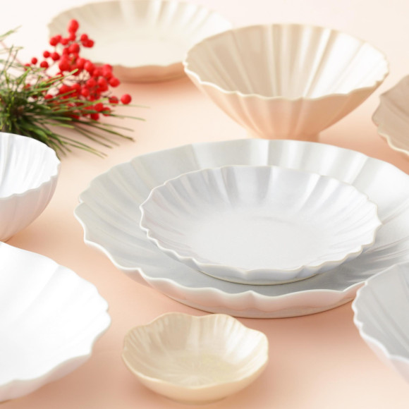 和食はもちろん、洋食や日々のメニューとも合わせやすい、明るいカラーとお花のようなフォルムがポイント☆