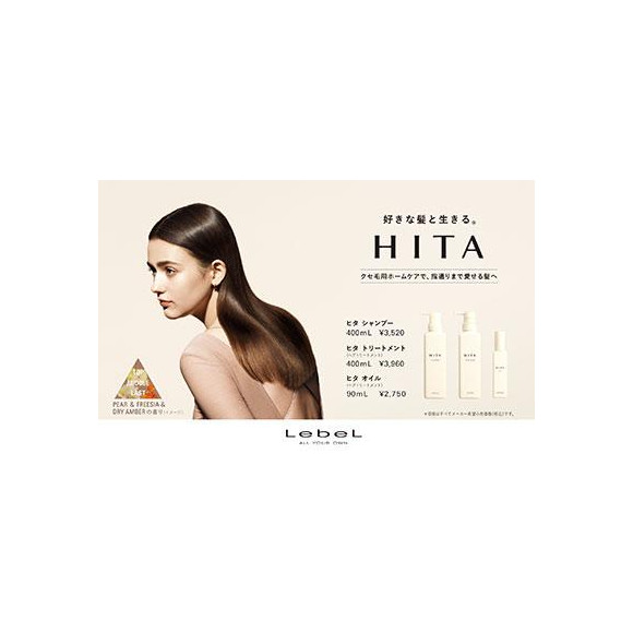 【HITA(ヒタ)】はジャンプー・トリートメント・アウトバスの3つからなる、広がる・ザラつくクセ毛を根元からしなやかにする潤い美髪ケアシリーズです♪
