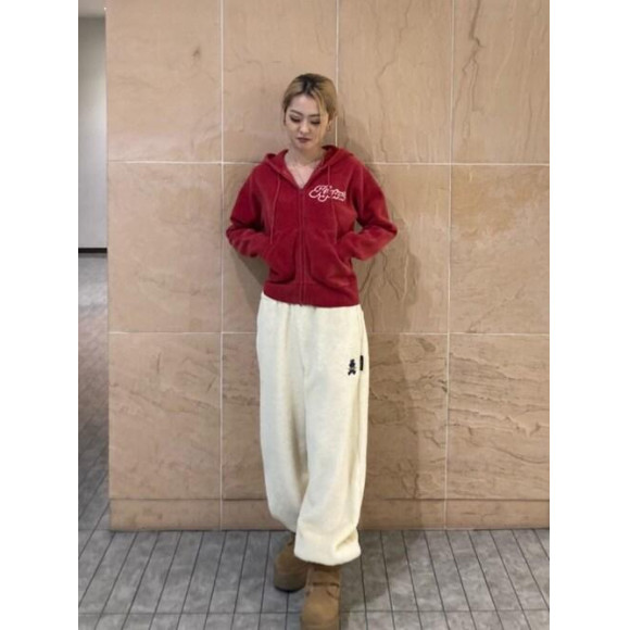 ボリュームのあるパンツに合わせるトップスはタイトめがオススメ!どちらも暖かい素材でパンツはウエストがゴムなのでストレスフリーに着ていただけます!