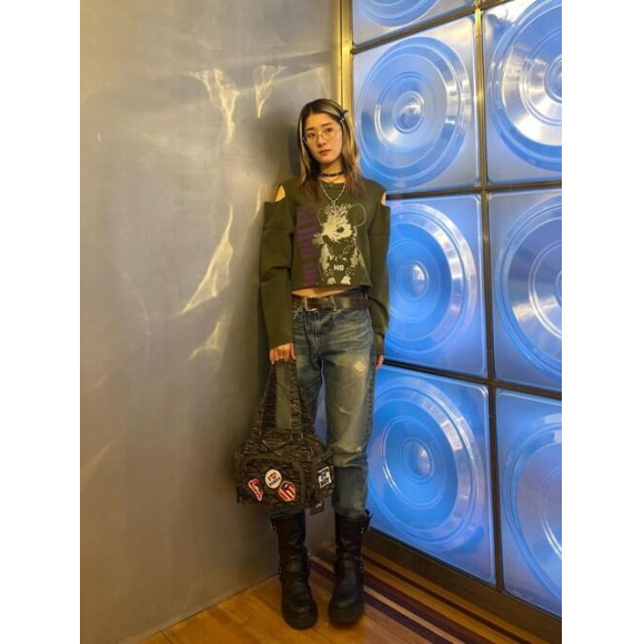 腰で落としてローライズ風に短めのトップスと合わせるとかわいいです