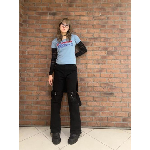 ボンテージパンツはボリュームがある分、ぴったりしたトップスを合わせると上半身が細見えします〜♬
