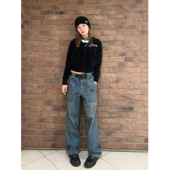 ショート丈パーカーにゆったりデニム✨