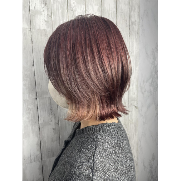 イヤリングカラーとレイヤーボブの組み合わせなので、