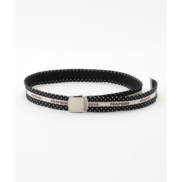 【デザイン】メンズのスーツスラックスの内側に使われる「マーベルト」をアレンジしたローラバックルのカジュアルベルト。ドット柄がさりげない中にインパクトをつくっています。オリジナルのロゴテープもシンプルな中に遊びとハズしを加えてくれています。 *こちらの商品はユニセックス商品です。