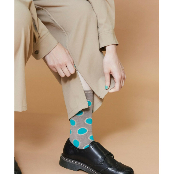素材の持つ上品で大人っぽいイメージがカジュアルになりがちなアイテムにモードな雰囲気を作っています。