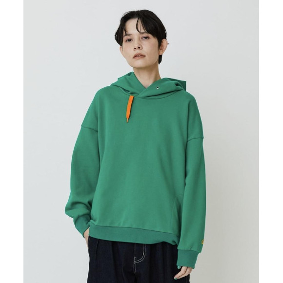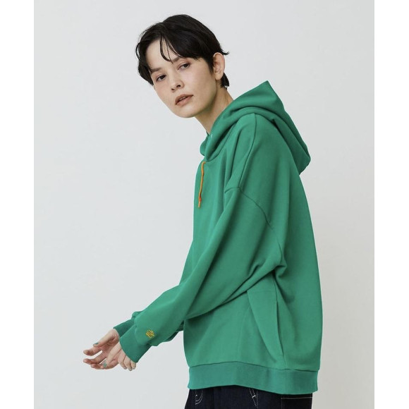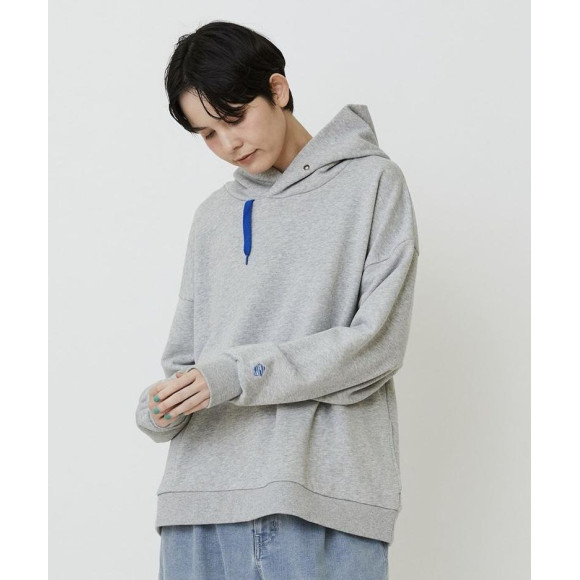 【デザイン】ゆったりとしたリラックスシルエットのベーシックなパーカーはポケットの作りを脇に作ってスッキリとした雰囲気。