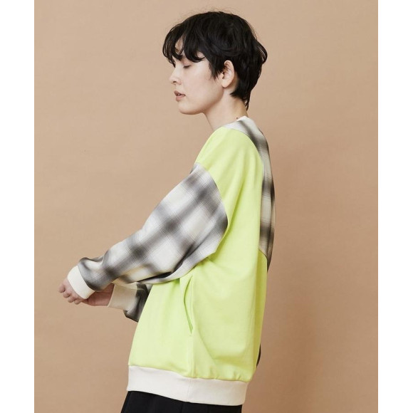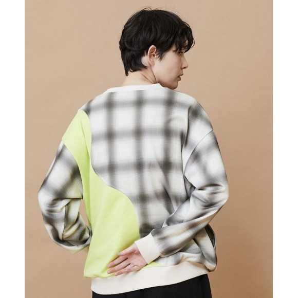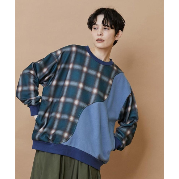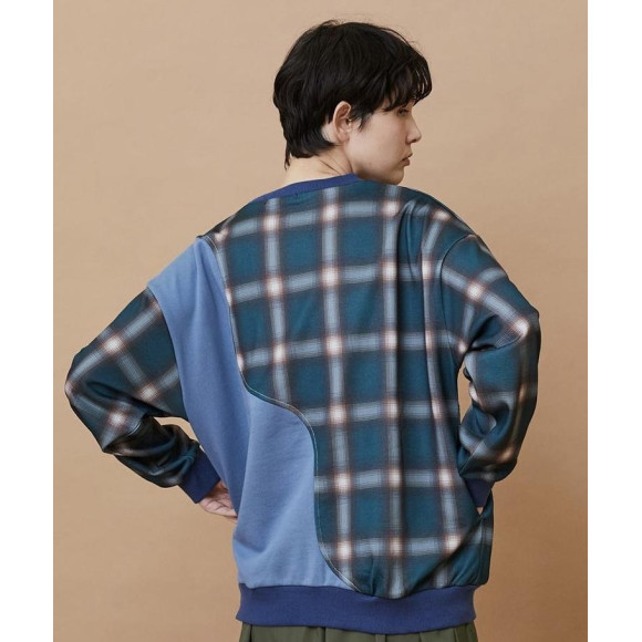 【素材】オリジナルのオンブレーチェック柄をプリントした裏毛素材とキレイな配色の無地の裏毛素材を組み合わせています。