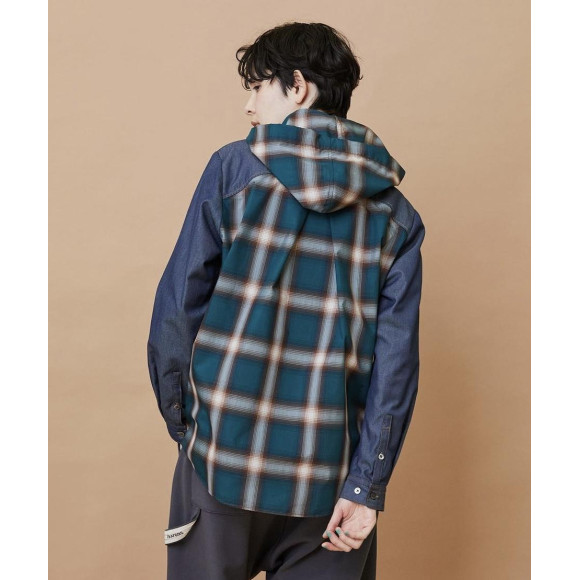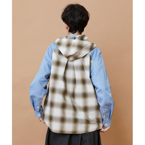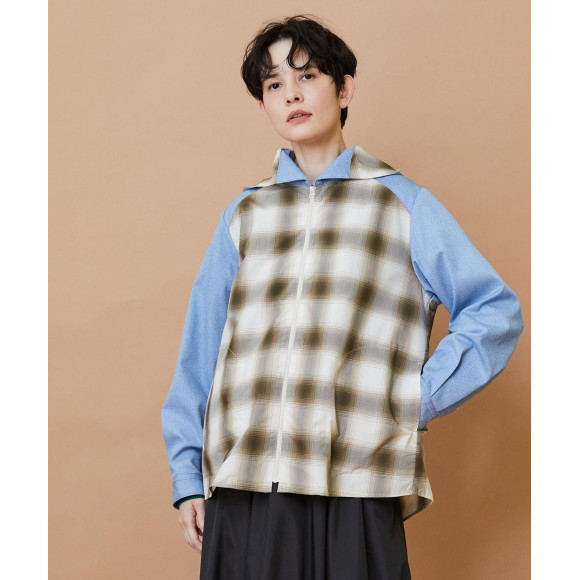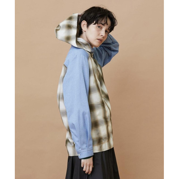 オンブレーチェックとデニム調の生地の組み合わせが面白いデザインになっています。