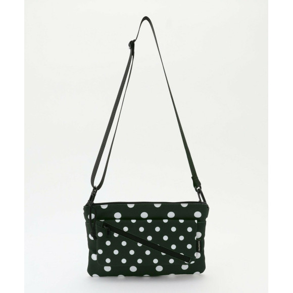 デザイン:横長のサコッシュはフロントの立体的なポケットがポイント。斜めに入ったファスナーがシンプルな中にも程よいアクセントをつくっています。反対面はメッシュポケットが付き、用途によって使い分けが出来ます。