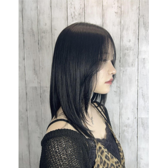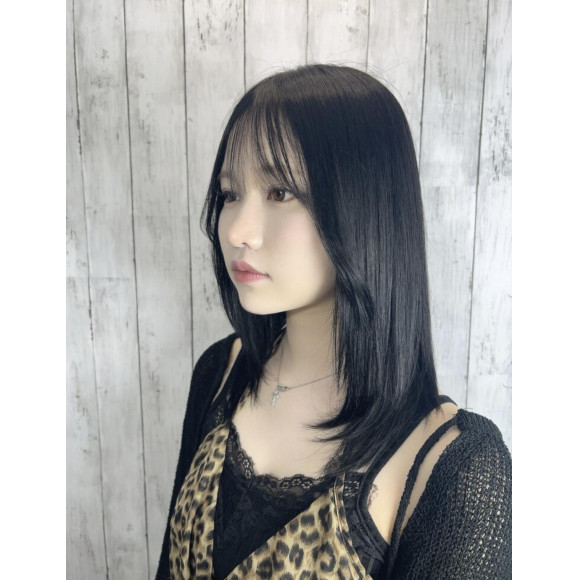 黒髪ならではの艶感と、ほんのりシアーな質感を出すためにアッシュテイストのブラックカラーに^_^